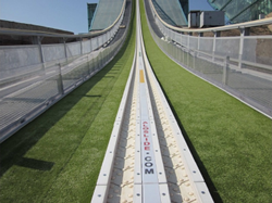 アロースライド・アイスシステムは、ヨーロッパの雪不足によるスキージャンプ競技の延期中止を抑制するために、最先端技術で開発されたスキージャンプ台アプローチレールシステムです。