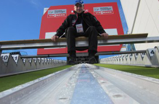 サマー用セラミックレールとウインター用の自動氷層生成レールで、1年を通してスキージャンプ台を同一条件で保持することが可能となりました。
